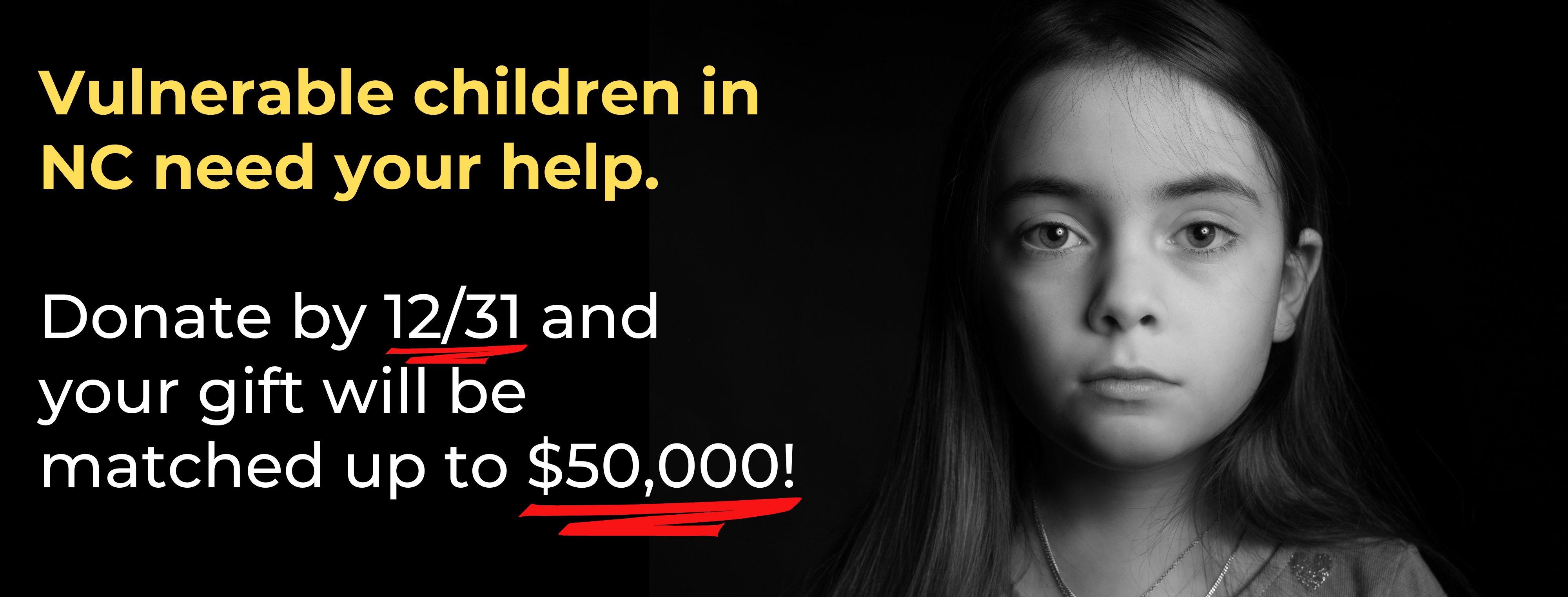 This means your gift will go twice as far in providing loving foster homes, therapy, and mental health care to vulnerable children and families across North Carolina. Give before the year is over and give NC kids hope in 2025!